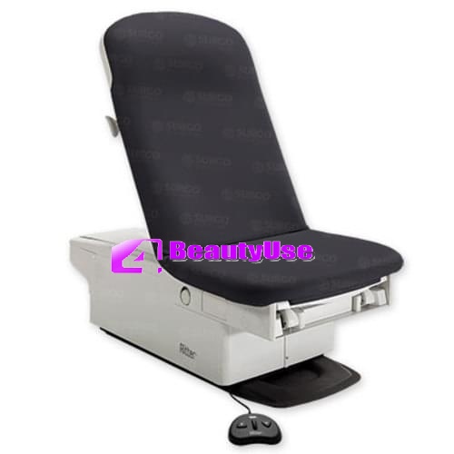 The chair features powered height adjustment, an automated movement system, and an optional pelvic tilt for gynecological or general examinations. Its durable upholstery and seamless surface design promote easy cleaning and infection control, while integrated stirrups and storage drawers increase functionality and convenience.